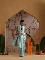 - Handwoven Pure Katan Silk Blue Kadwa Jaal Silver Zari Banarasi Saree
