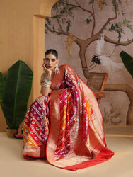 - Handloom Pure Katan Silk Shikargah Banarasi Saree