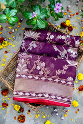 - Banarasi Cotton Handloom Jamdani Ektara Saree