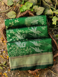 - Handloom Pure Katan Silk Green Shikargah Banarasi Saree
