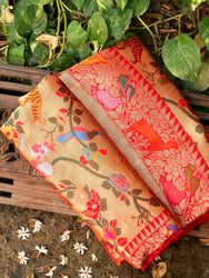 - Handwoven Pure Sateen Silk Kadwa Squirrel Banarasi Saree
