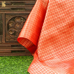 - Red Handwoven Pure Satin Silk Banarasi Fabric