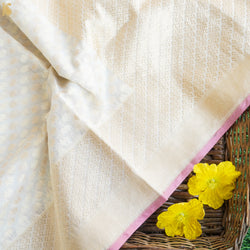 - Handloom Pure Cotton Pale White Banarasi Saree