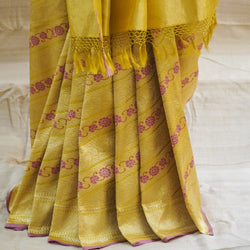 - Mustard Yellow Pure Katan Silk Handloom Banarasi Leheriya Saree
