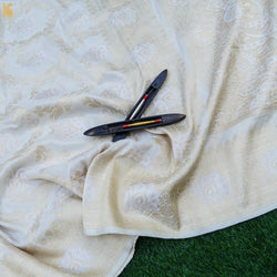 - Handloom Pure Tissue by Silk Off White Banarasi Saree