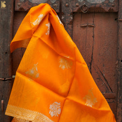 - Handloom Pure Kora Silk Yellow Banarasi Kadwa Dupatta