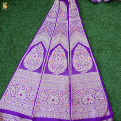 - Handloom Banarasi Katan Silk Kalidar Gulrangi Bagh Lehenga