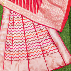 - Magenta Handloom Moonga Silk Banarasi Stripes Stitched Lehenga