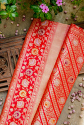 - Handloom Banarasi Silk Meena Brocade Saree with Kadwa Border