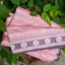 -  Handwoven Pink Pure Mashru Kora Silk Banarasi Saree