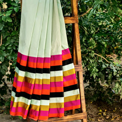 - Handwoven Pure Mashru Silk Stripes Border Saree