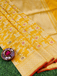 - Handwoven Katan Silk Banarasi Shikargah Saree