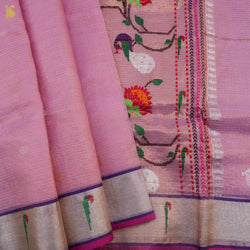 - Handwoven Hopbush Pink Real Zari Kota Silk by Tissue Saree with Muniya Border