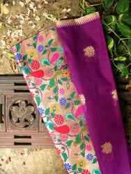 - Handloom Banarasi Kora Organza Paithani Border Saree
