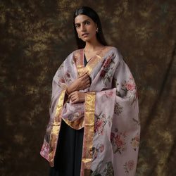- Organza Floral Printed Dupatta with Banarasi Border