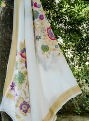 - Handwoven Banarasi Georgette Dupatta with Floral Meenakari