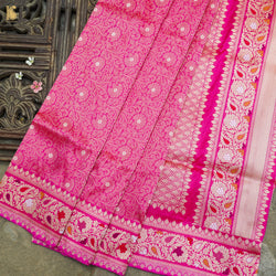 Our Pink Banarasi Sarees showcase exquisite craftsmanship with luxurious silk and intricate gold and silver brocade designs. Ideal for weddings and festive occasions, these sarees combine vibrant elegance with timeless tradition.