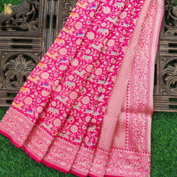 - Razzmatazz Pink Pure Katan Silk Handloom Banarasi Saree