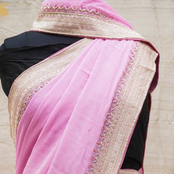 - Pink & Purple Pure Georgette Handloom Banarasi Jaal Marigold Saree