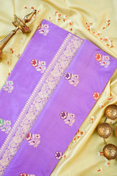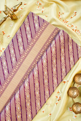 We have got you some colour palette of Purple Banarasi Sarees, which is a symbol of regal elegance, crafted from luxurious silk and embellished with intricate zari or brocade work. Ideal for weddings and festive occasions, it is a vibrant hue that exudes charm and sophistication, making it a timeless addition to any wardrobe.