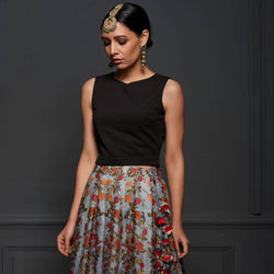 - Pure Tussar Silk Print Stitched Kalidar Lehenga