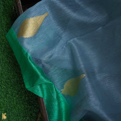 - Green Pure Linen Handloom Banarasi Kadwa Fabric
