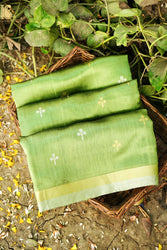 - Handwoven Chanderi Silk Green Saree