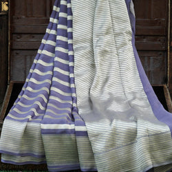 - Pure Georgette Handloom Stripes Banarasi Saree