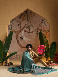 - Handloom Banarasi Peonies Tanchoi Silk Fabric