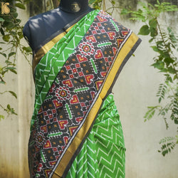- Green Pure Silk Handloom Single Ikkat Semi Patan Patola Saree