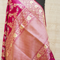 - Handwoven Pure Katan Silk Pink Kadwa Jaal Banarasi Saree