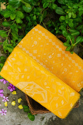 Feel the royalness of Yellow Banarasi Sarees that hold Khinkhwab's exclusive Banarasi touch of designs and patterns. Your ethnic look cannot be fulfilled without a yellow shade! The radiant yellow hue signifies prosperity and joy, making these sarees ideal while illuminating your every occasion with a touch of majestic splendor.