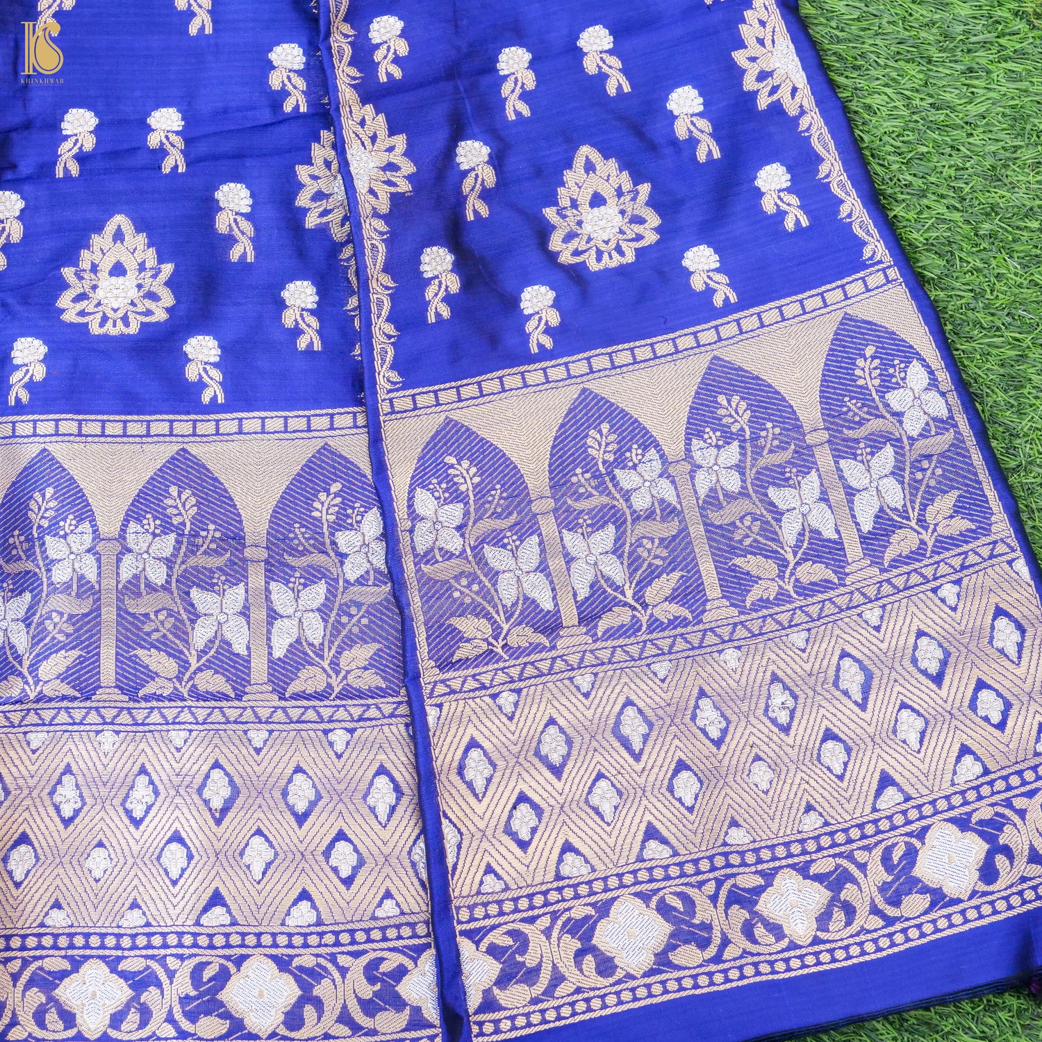 Blue Pure Katan Silk Handloom Banarasi Kalidar Lehenga - Khinkhwab