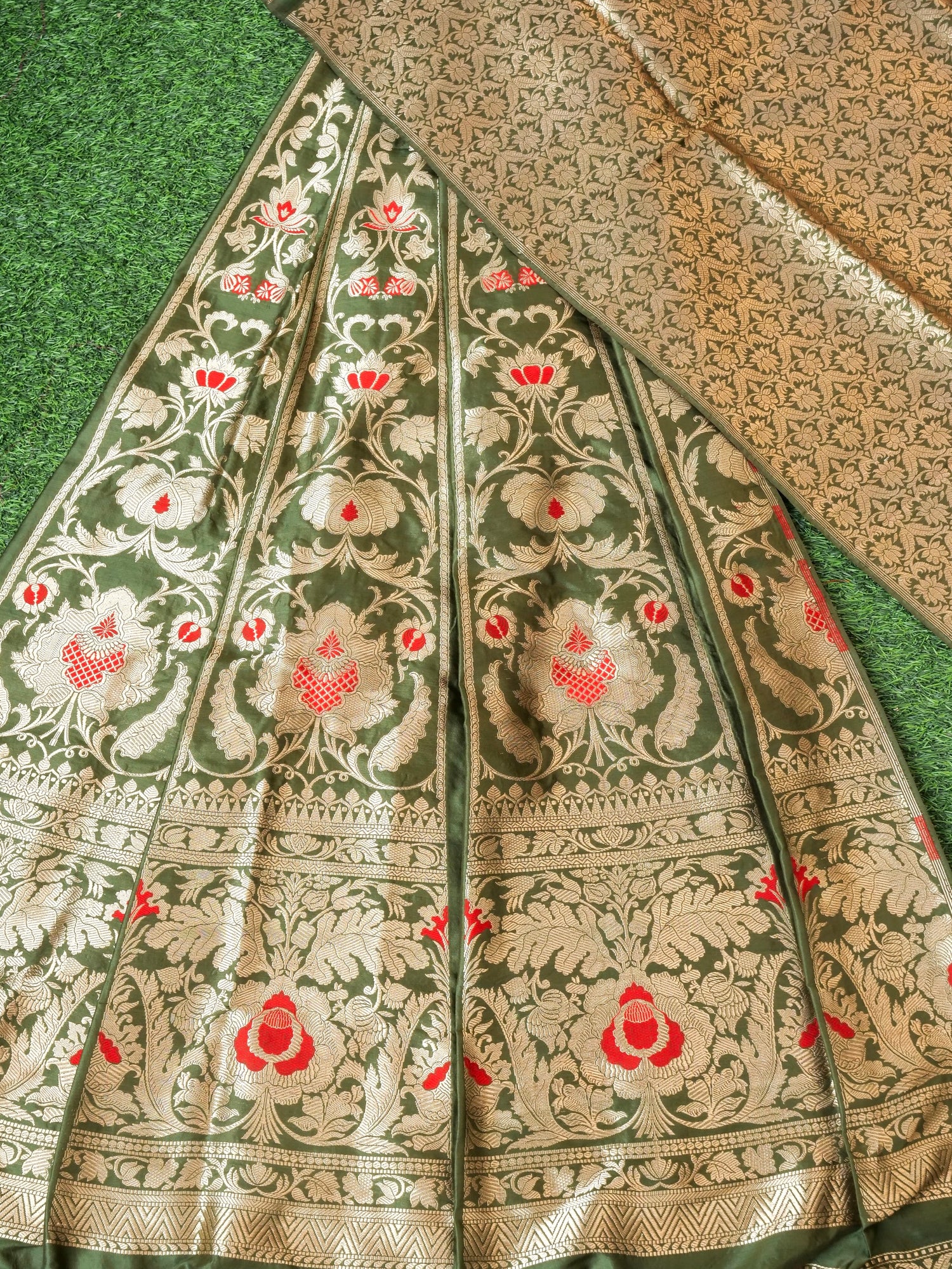 Handloom Banarasi Katan Silk Kalidar Manjari Lehenga