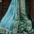 Add traditional hues to your wardrobe with Khinkhwab’s exclusive range of georgette sarees perfect to complete that regal look this season. This exclusive pure georgette Handloom Banarasi Silk saree has small silver zari dollar booties all over and an intricately woven floral silver zari border that adds to its beauty and grace.