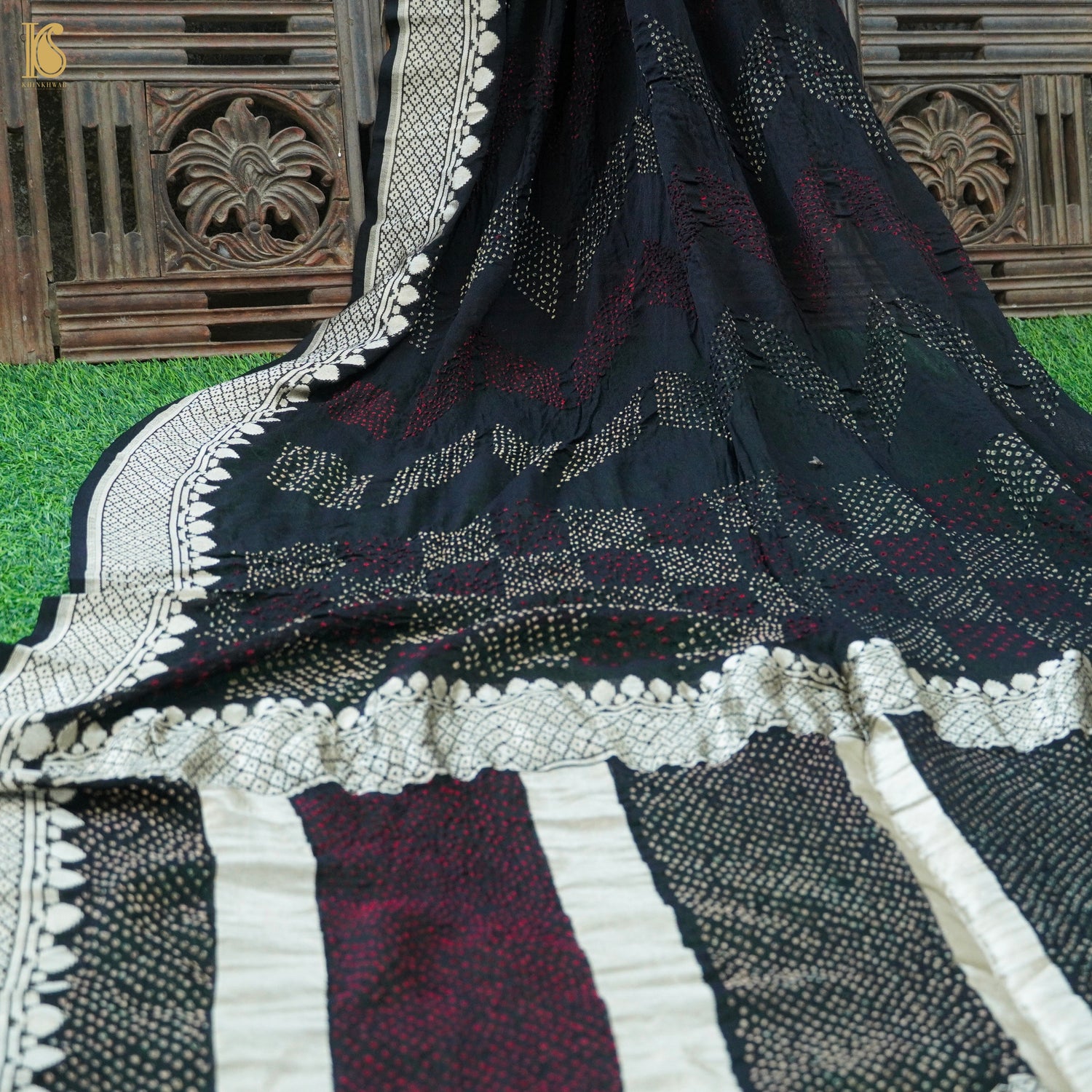 Experience the exquisite charm of Khinkhwab's Bandhani Banarasi saree. This beautiful piece effortlessly combines rich sophistication with comfort, making it an ideal all-weather attire. Elevate your style with this timeless creation.
