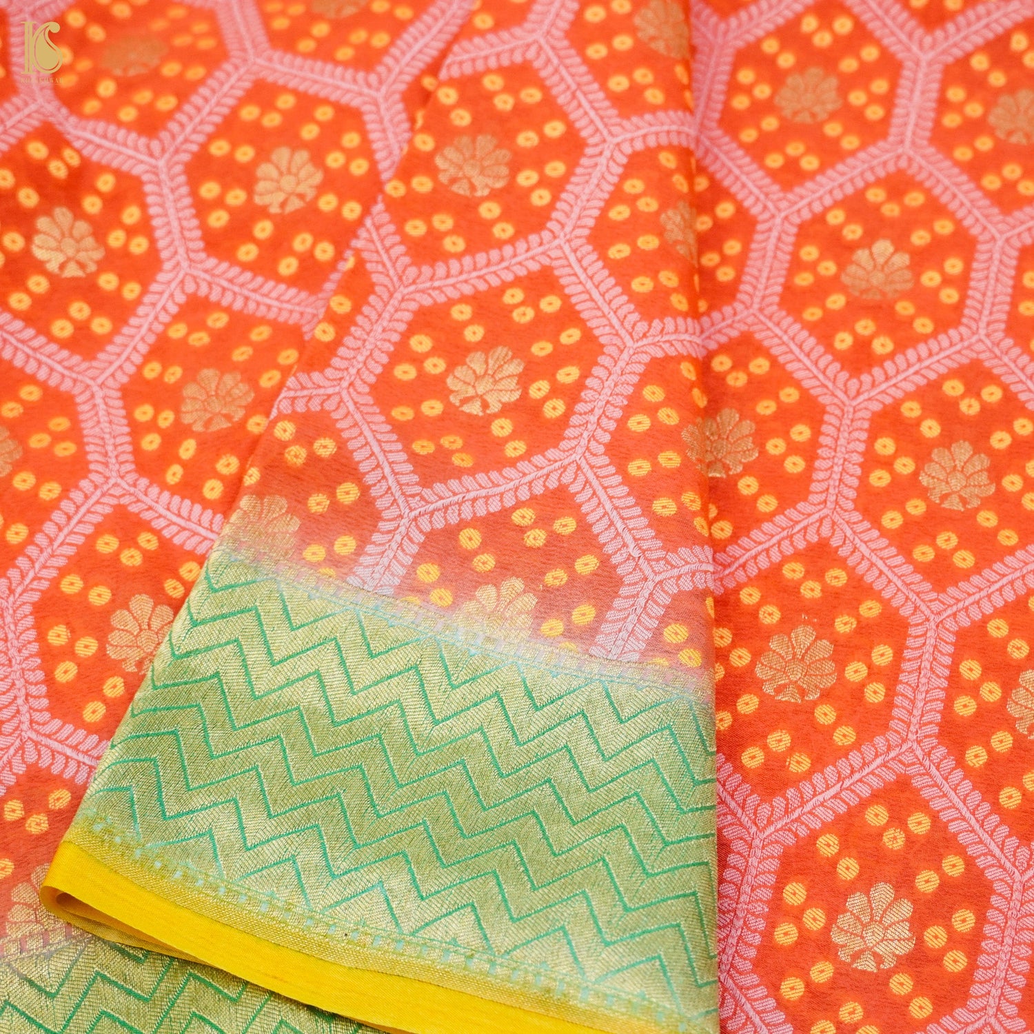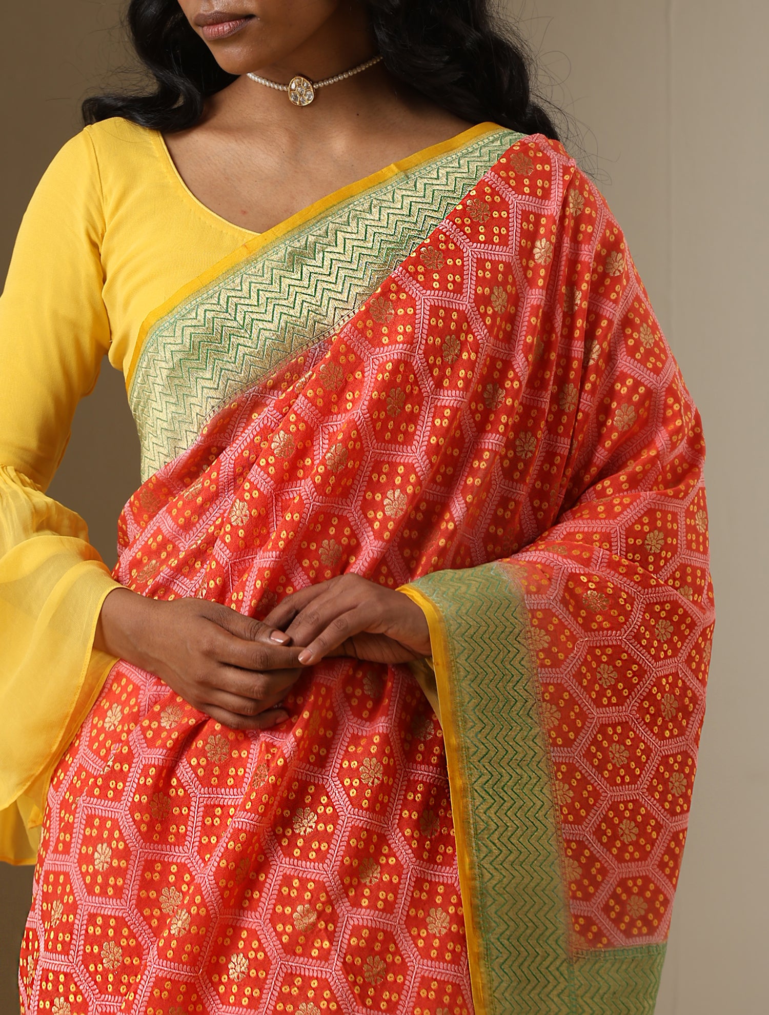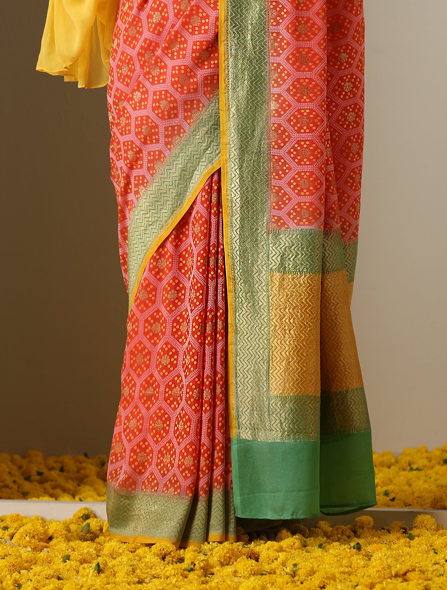 Vermilion Red Pure Georgette Banarasi Honeycomb Saree - Khinkhwab