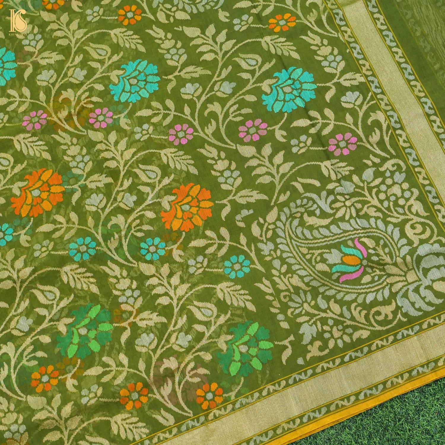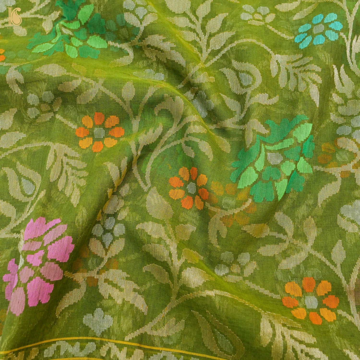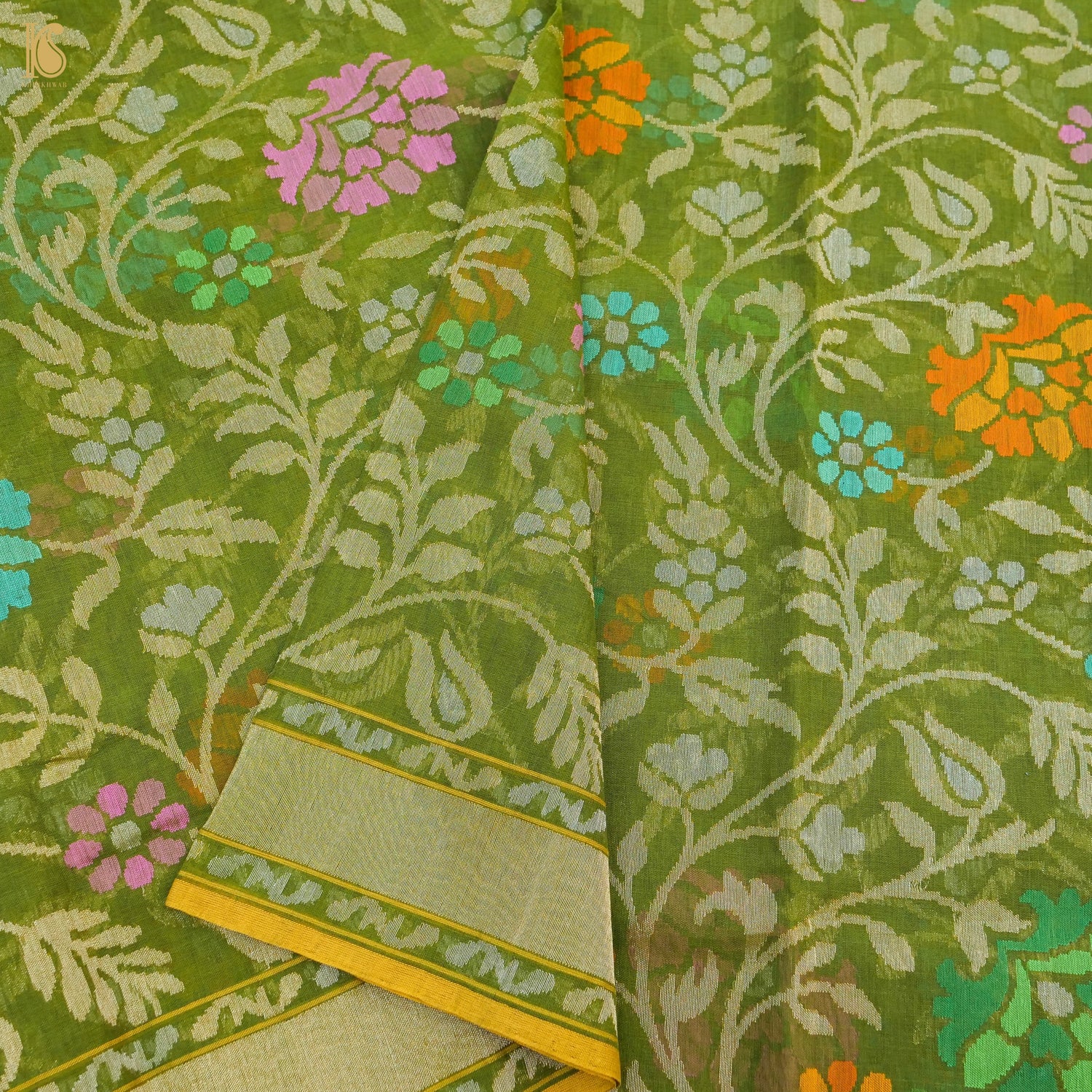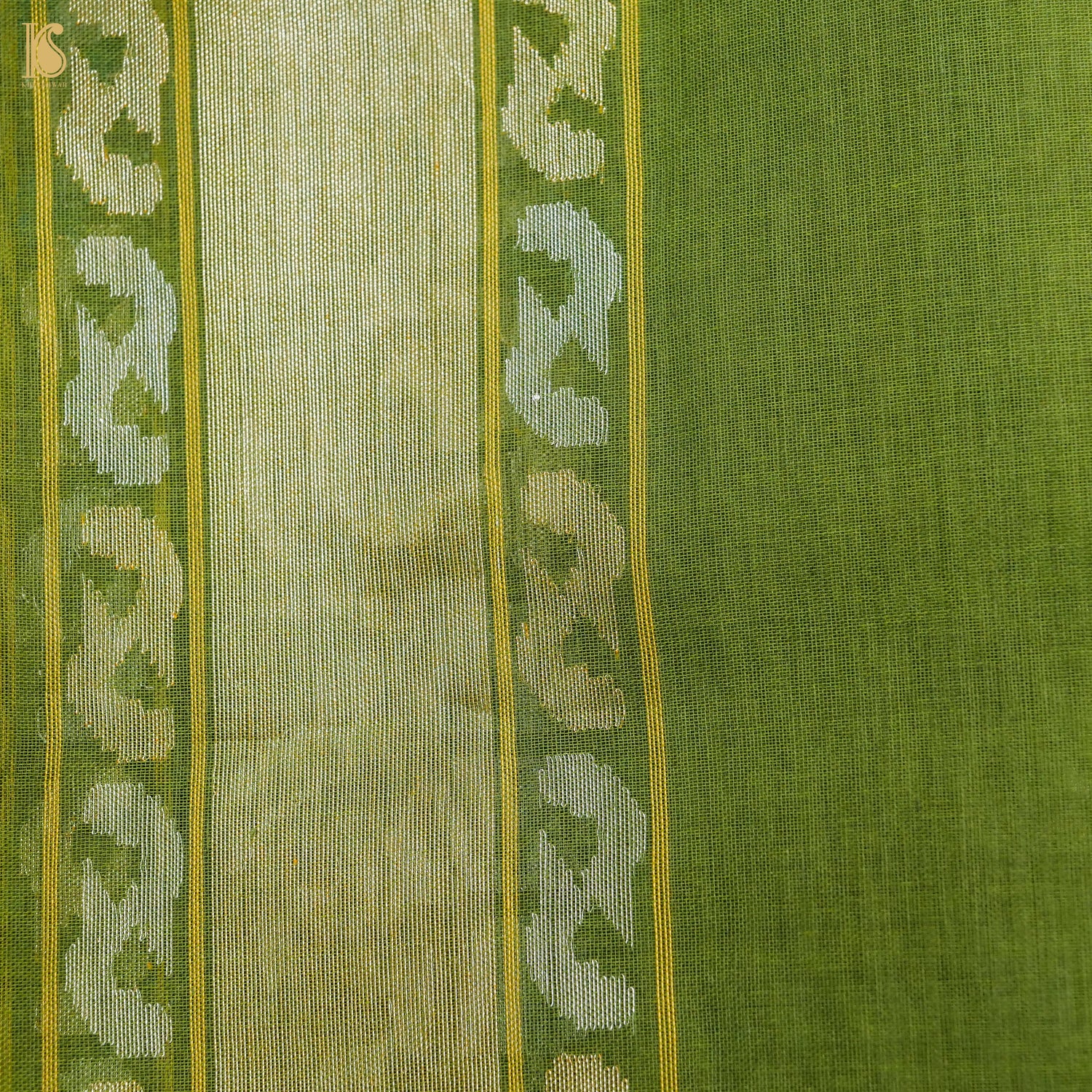 Green Leaf Handwoven Pure Cotton Real Silver Zari Banarasi Saree - Khinkhwab