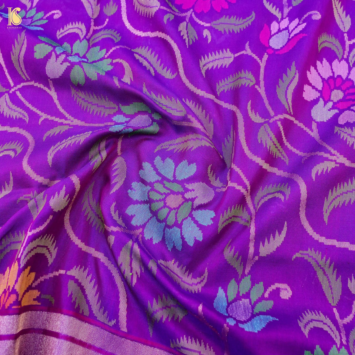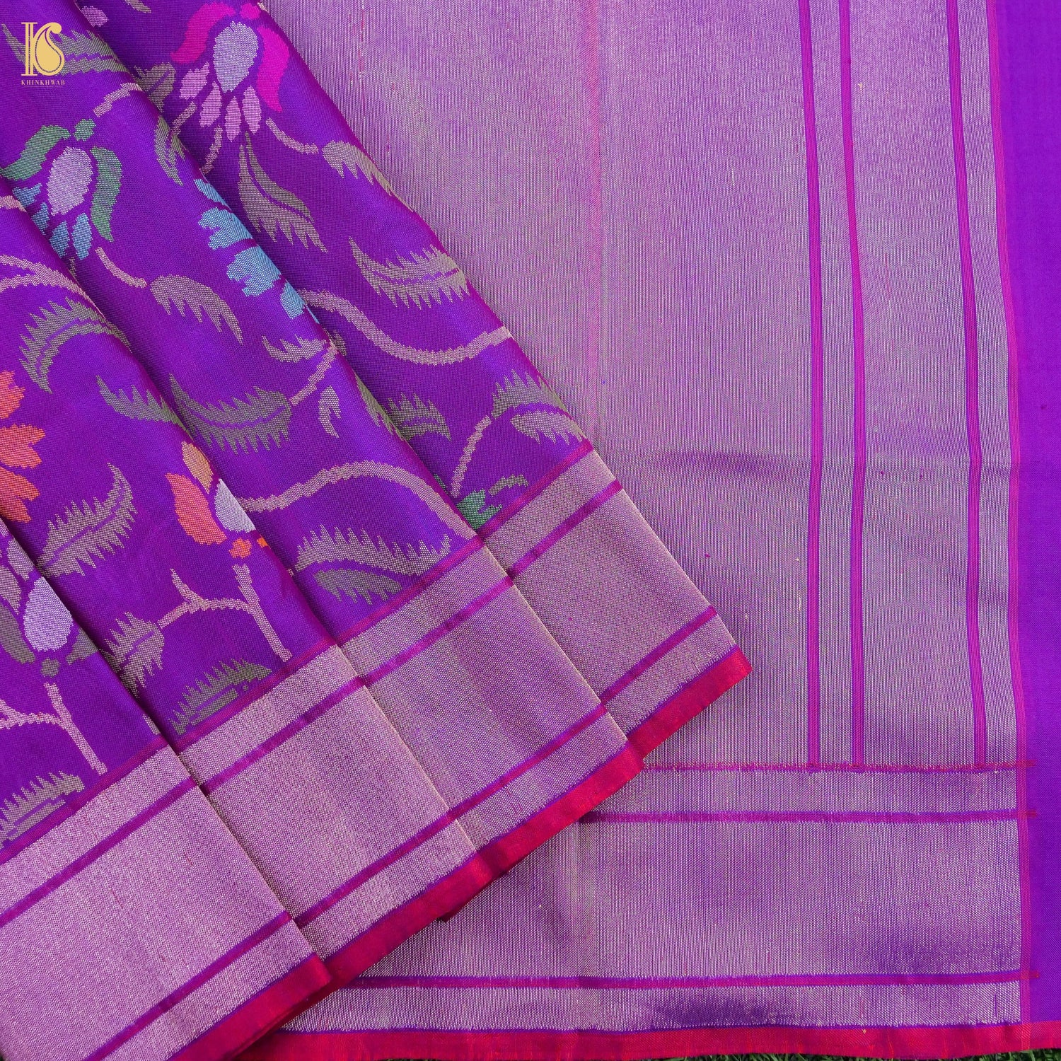 Magenta Handwoven Pure Cotton Real Silver Zari Banarasi Saree - Khinkhwab