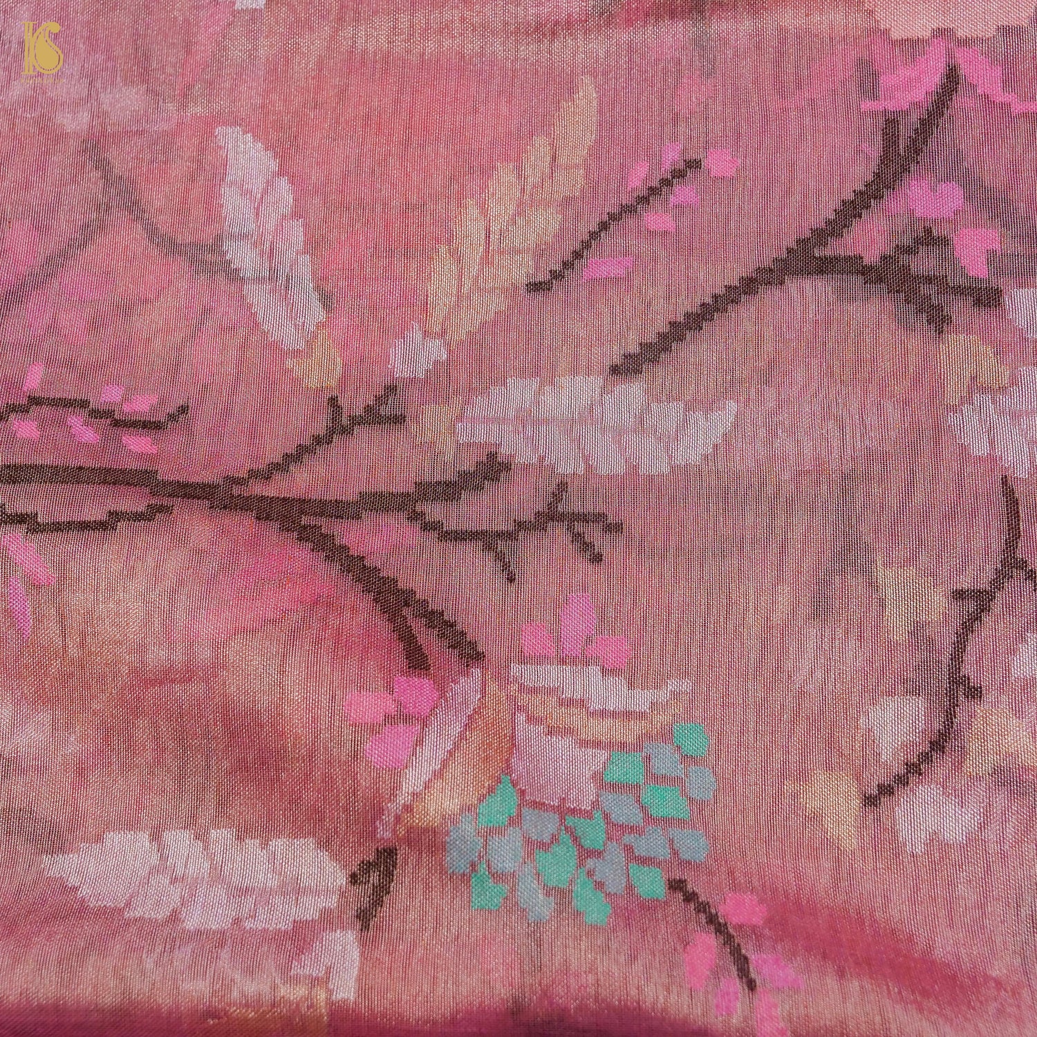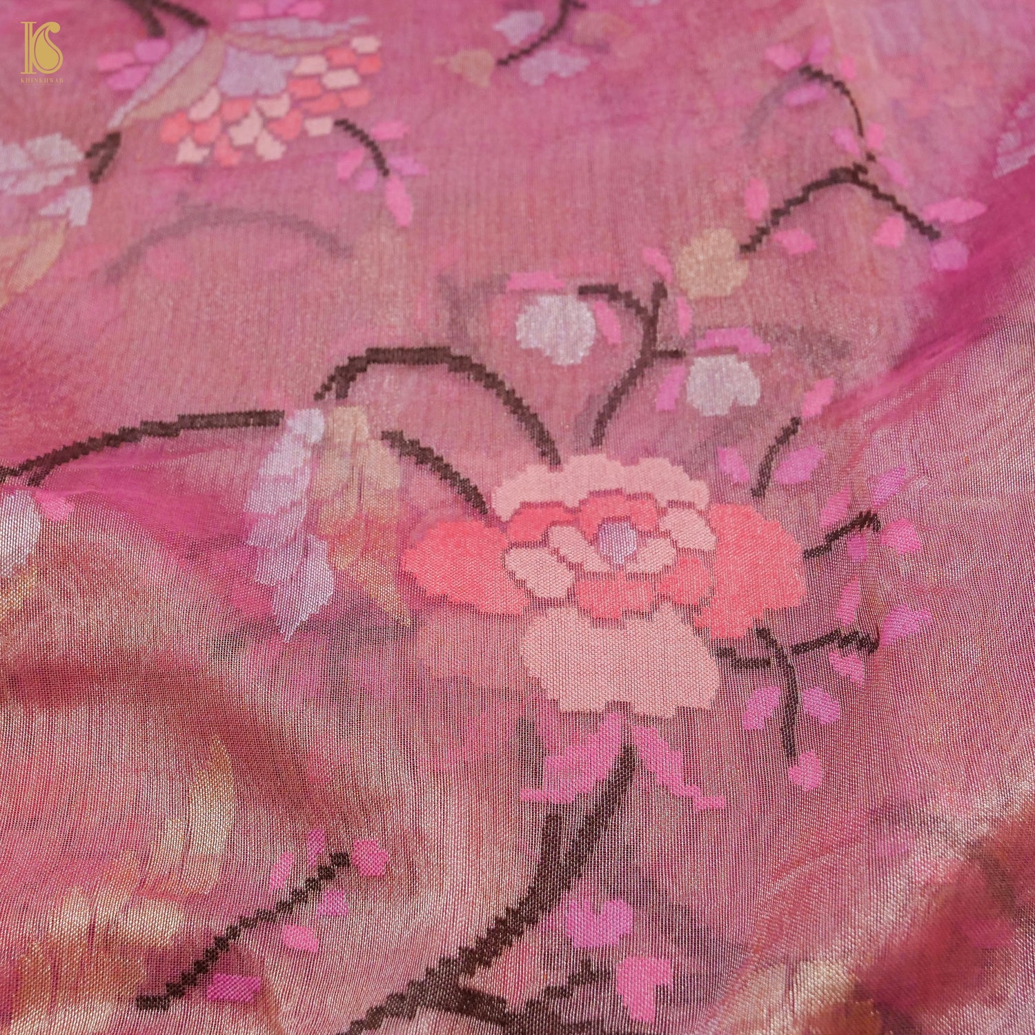 Charm Pink Pure Tissue Silk Real Silver Zari Handloom Banarasi Saree - Khinkhwab