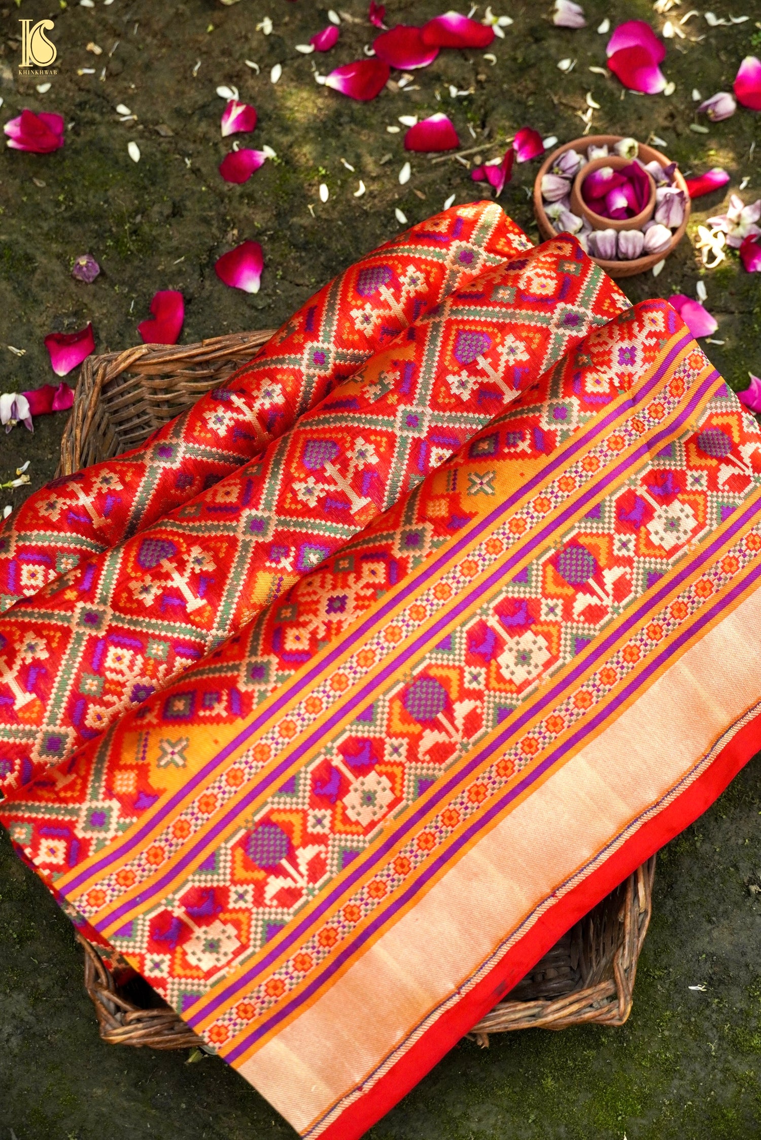 Introducing Khinkhwab's enchanting Katan Silk collection, designed to captivate your heart. Explore the allure of our meticulously crafted handloom sarees, featuring an exclusive gharchola  design pattern from patola collection.