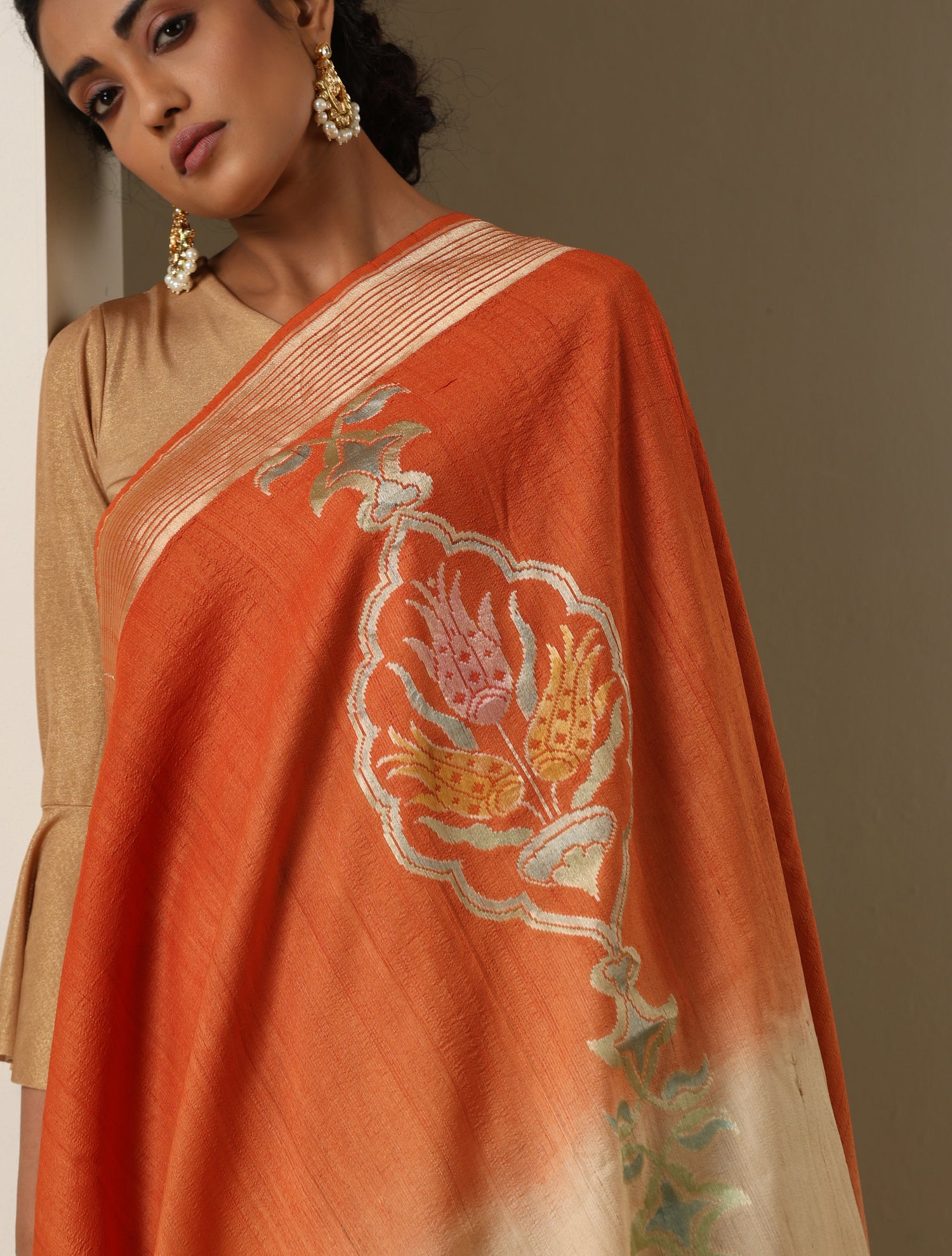 Get ready to wear this stunning Banarasi silk saree. Woven with passion and excellence, this Handloom Banarasi silk saree won't fail to catch your attention. Tussar Georgette silk sarees are known for their longevity and resilience, they make you fall in love with them.