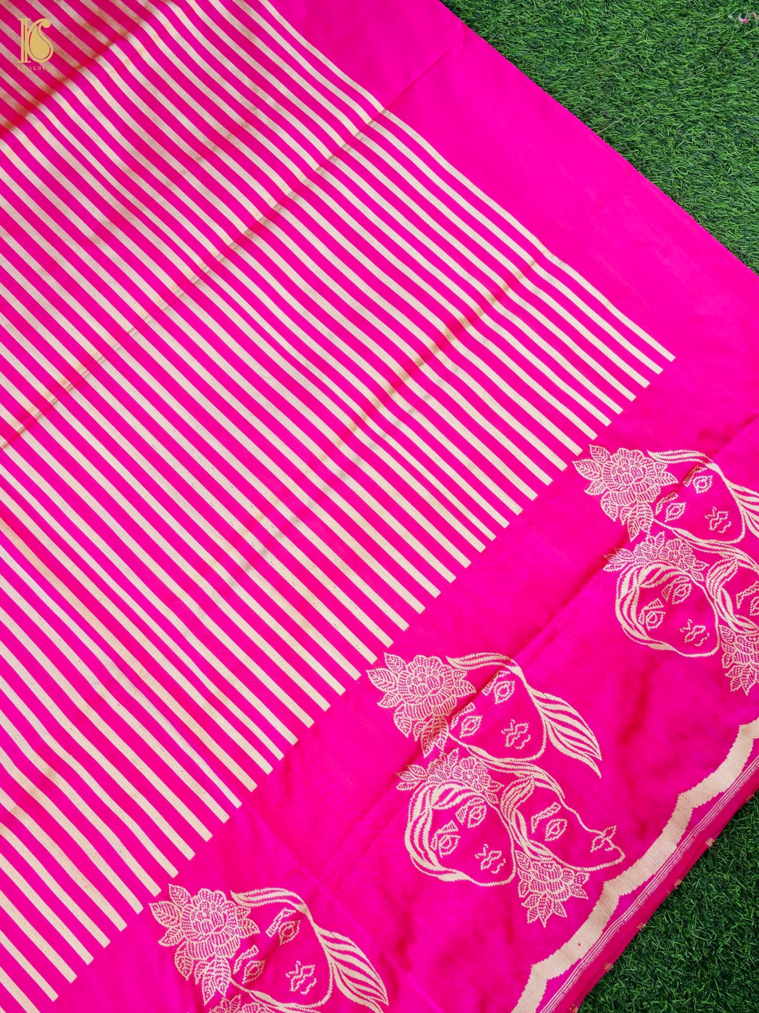 Handloom Banarasi Silk Tanchoi Stripes Saree