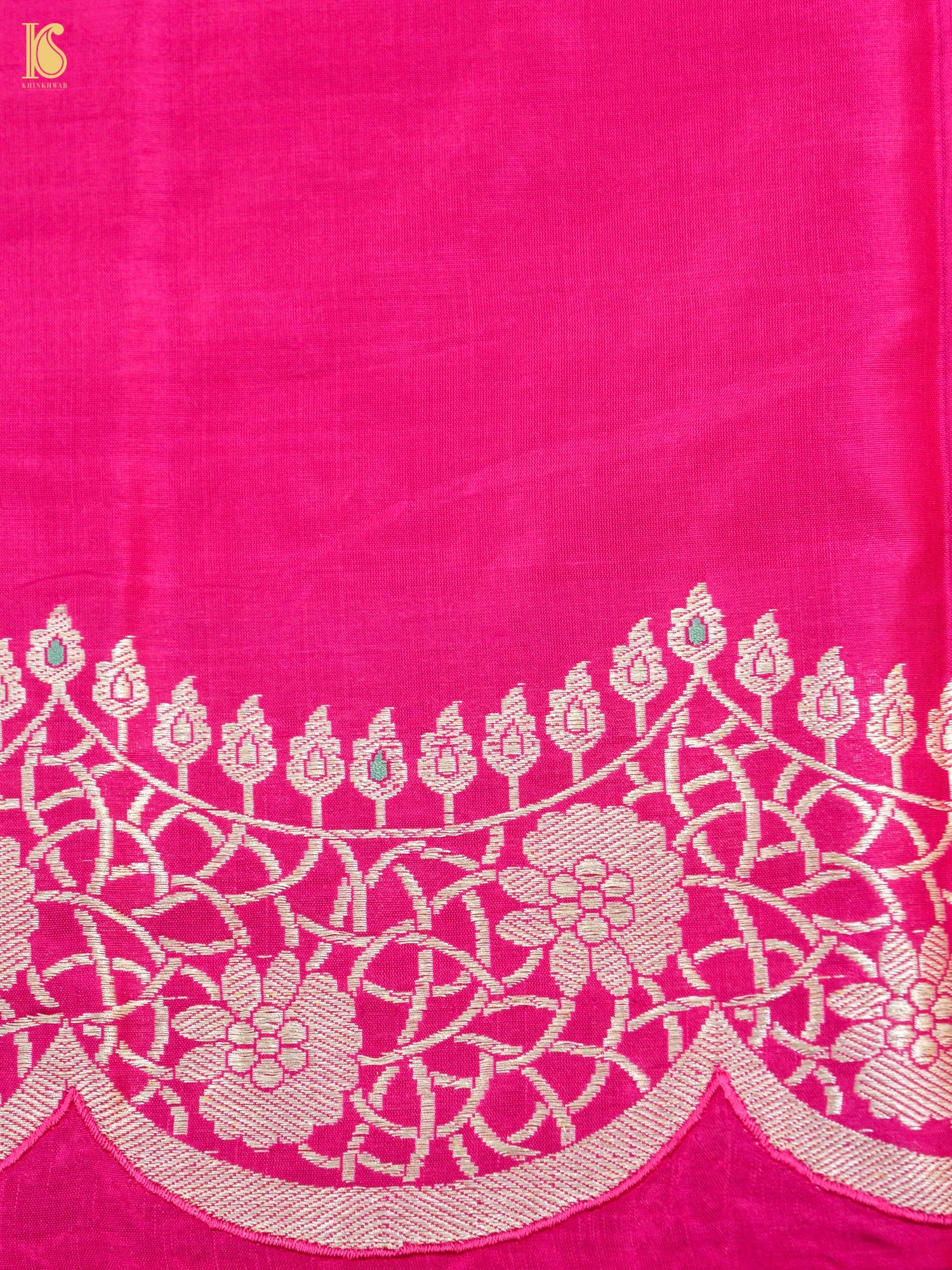 Ruby Pink Handloom Katan Silk Banarasi Shikargah Scallop Saree - Khinkhwab