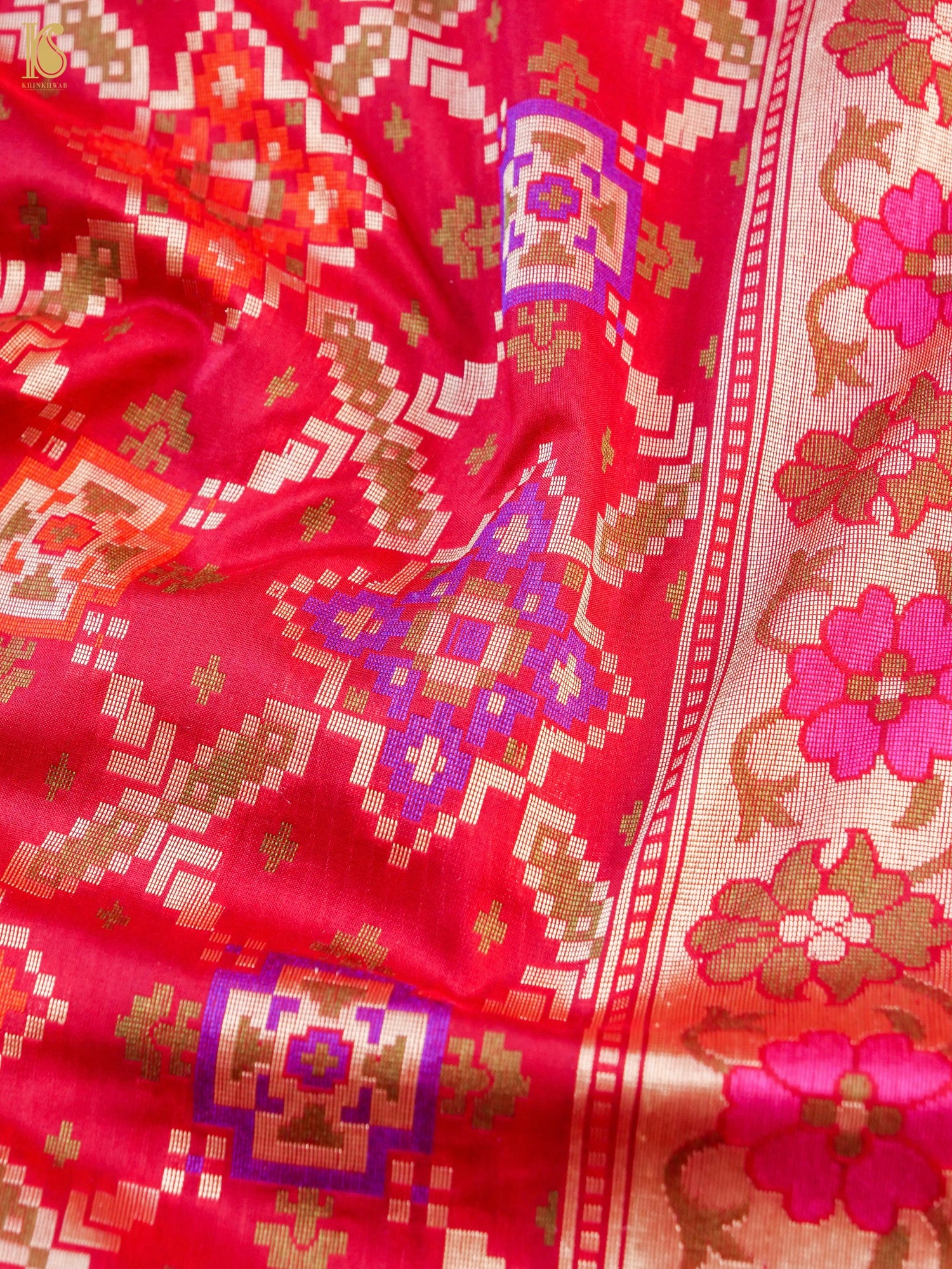 Introducing Khinkhwab's enchanting Katan Silk collection, designed to captivate your heart. Explore the allure of our meticulously crafted handloom sarees, featuring an exclusive gharchola  design pattern from patola collection.