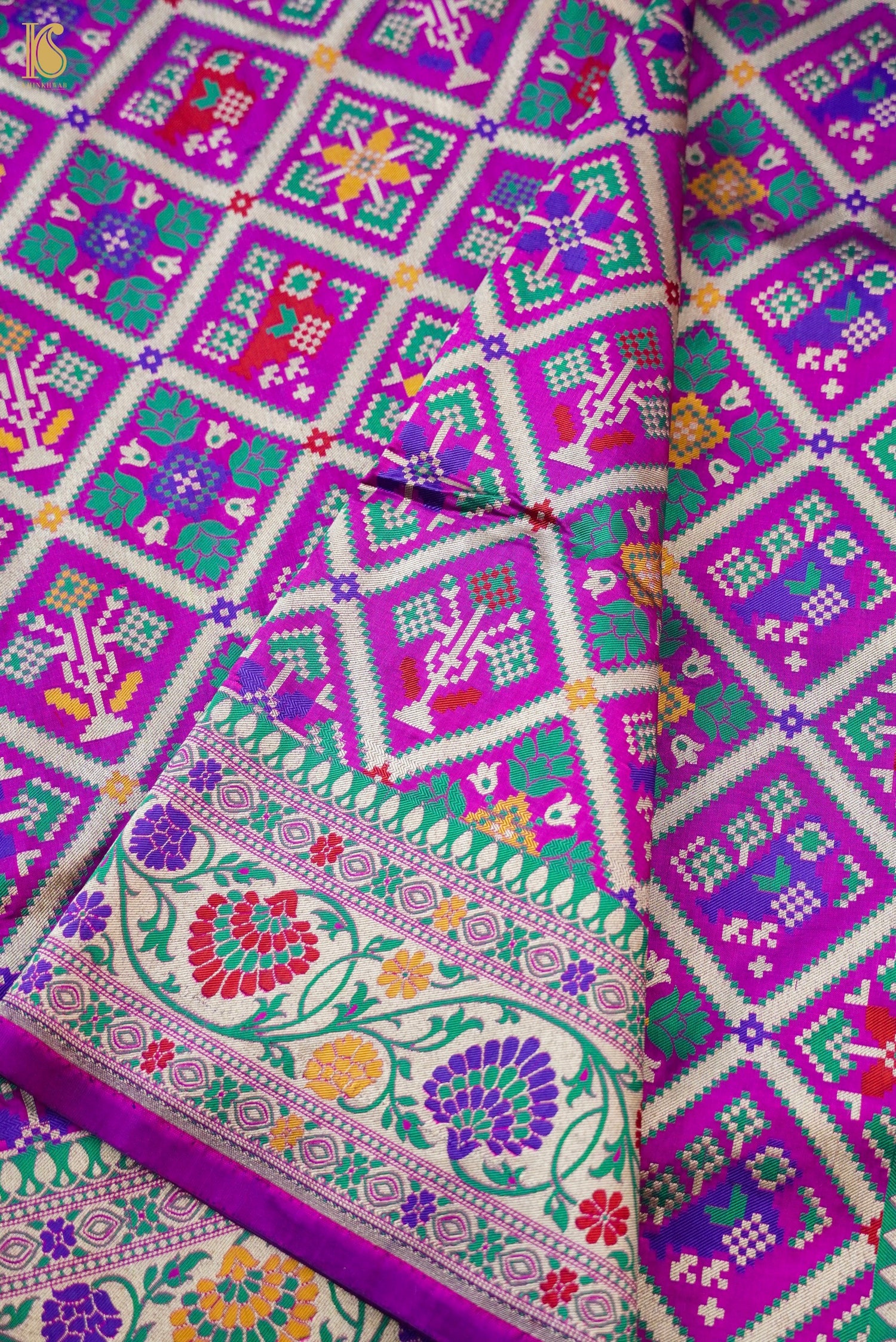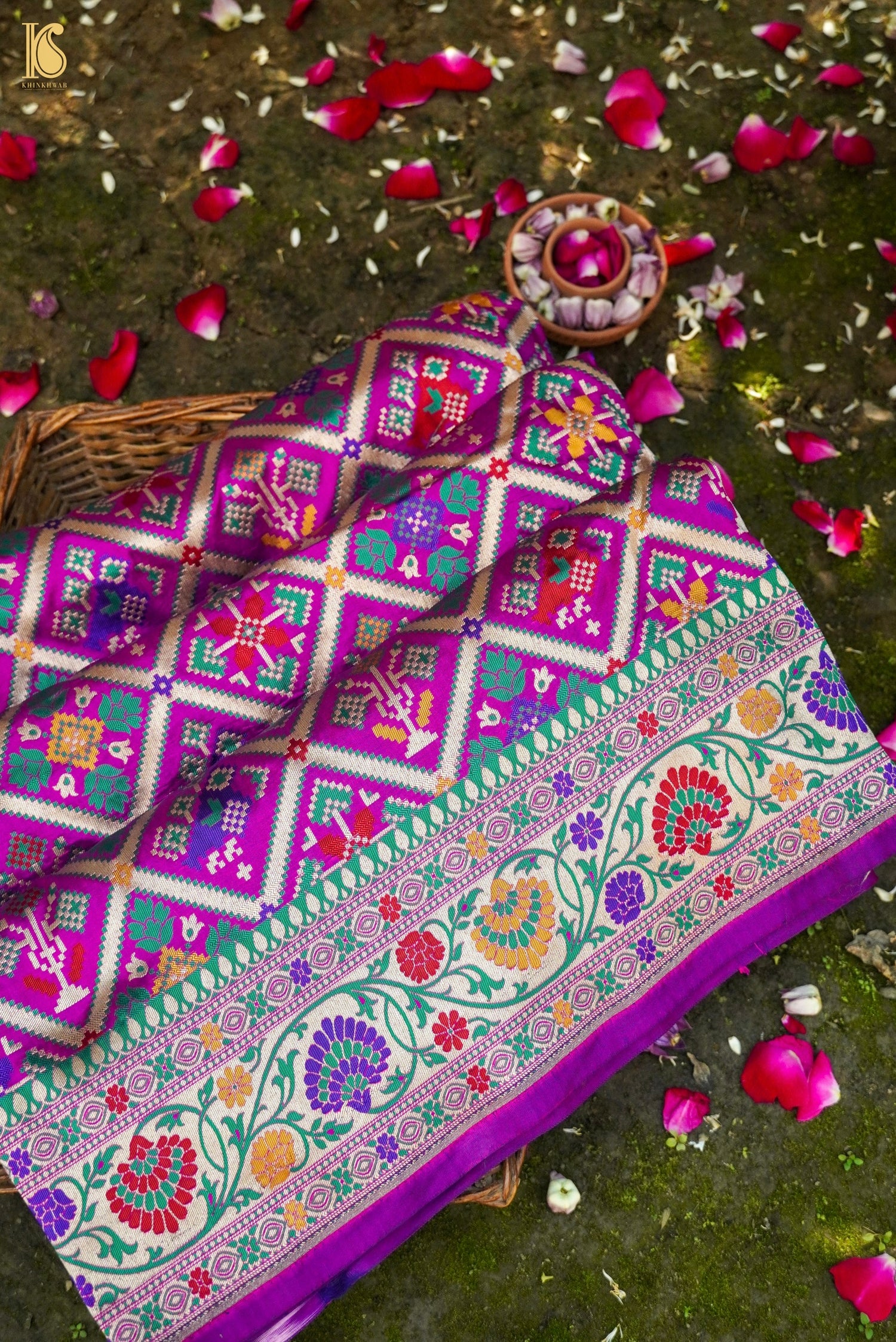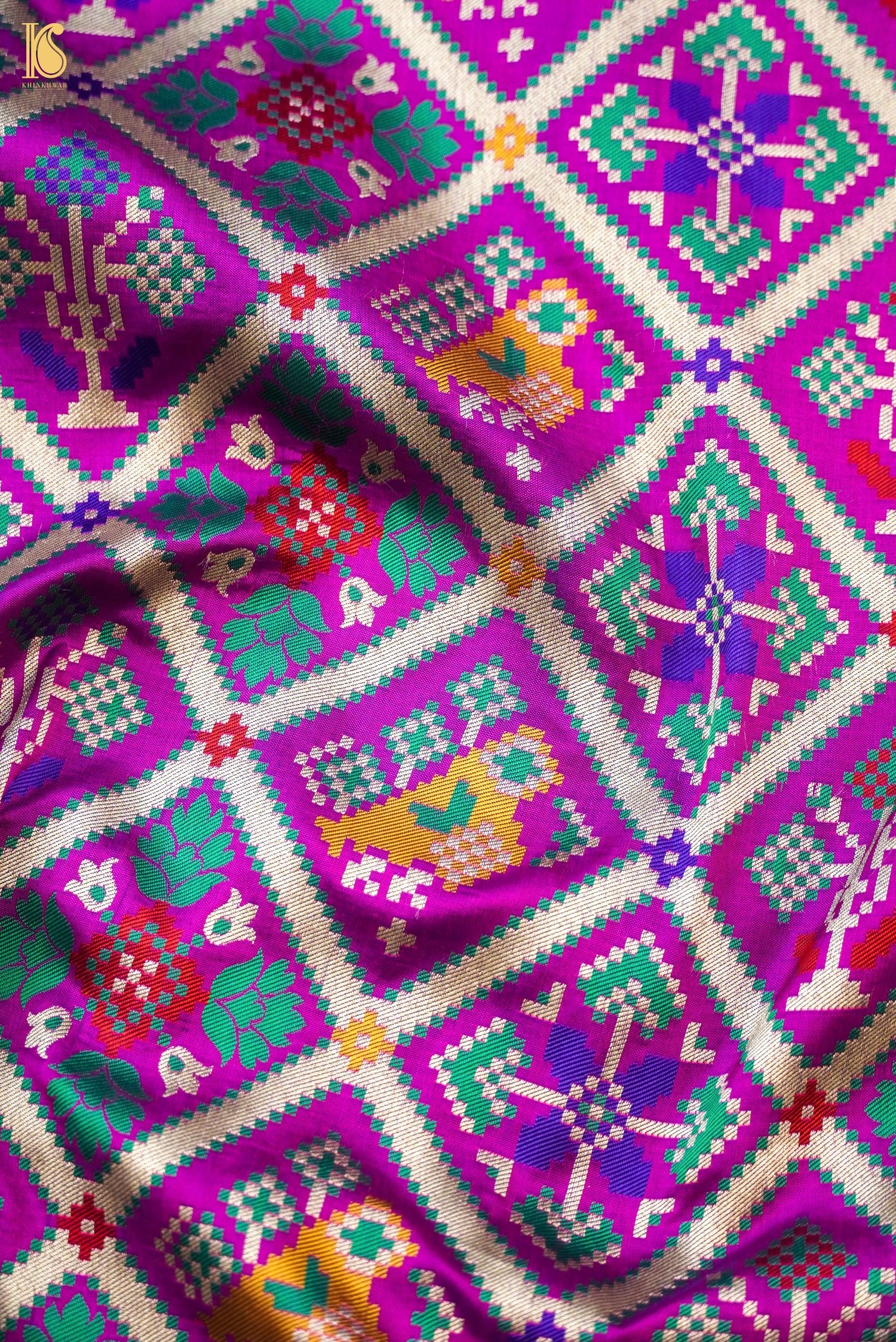 Introducing Khinkhwab's enchanting Katan Silk collection, designed to captivate your heart. Explore the allure of our meticulously crafted handloom sarees, featuring an exclusive gharchola  design pattern from patola collection.
