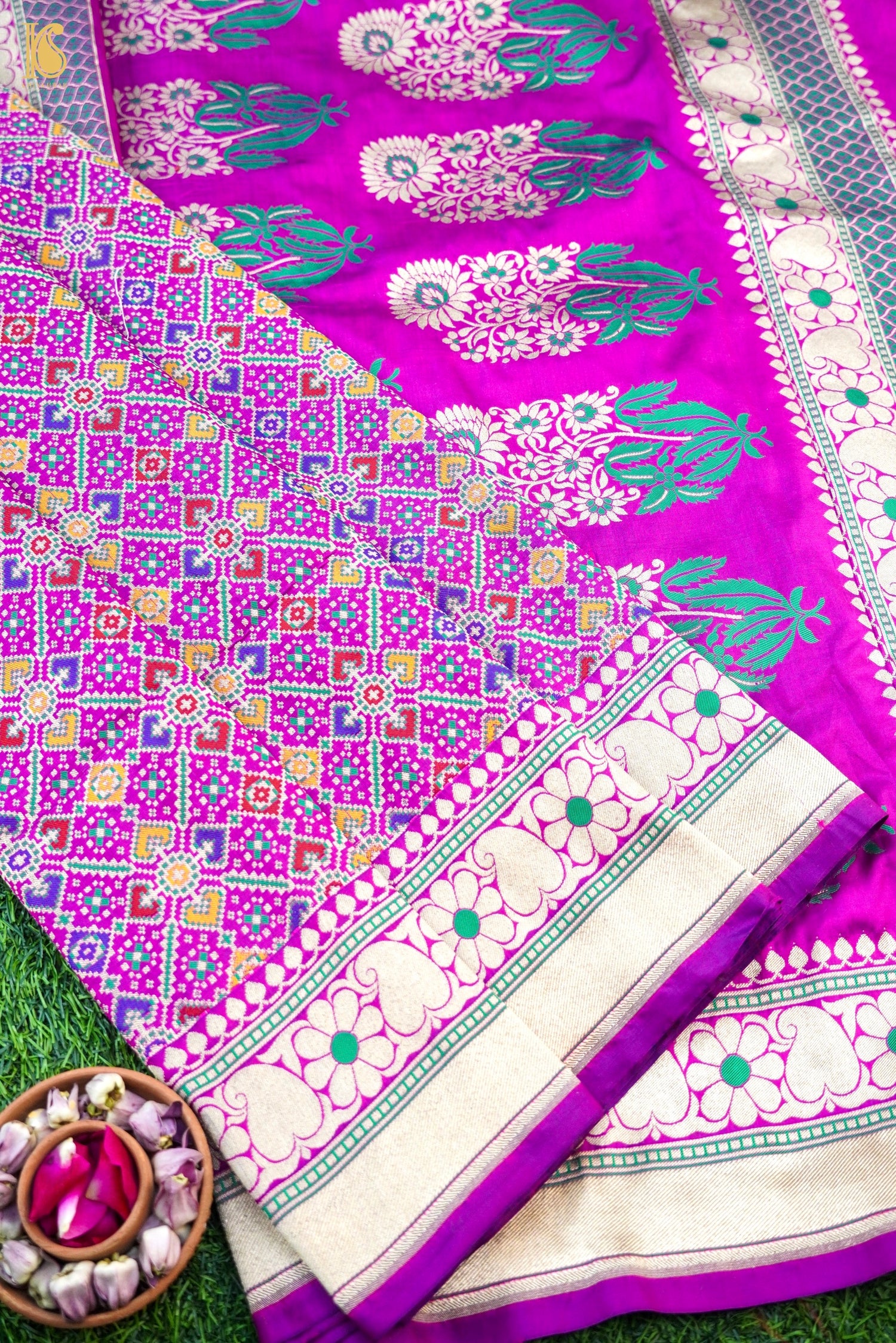 Introducing Khinkhwab's enchanting Katan Silk collection, designed to captivate your heart. Explore the allure of our meticulously crafted handloom sarees, featuring an exclusive gharchola  design pattern from patola collection.