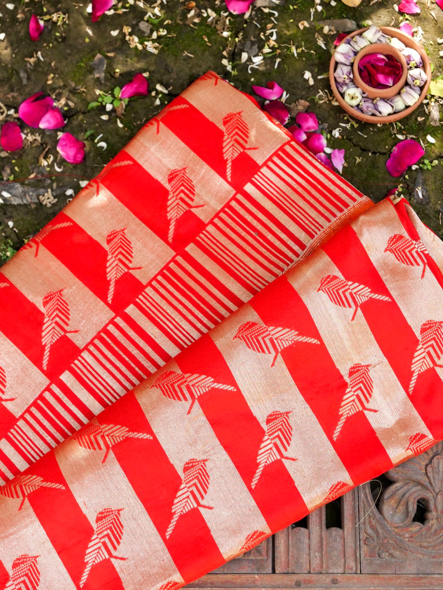 Handwoven Katan Silk Banarasi Chidiya Saree