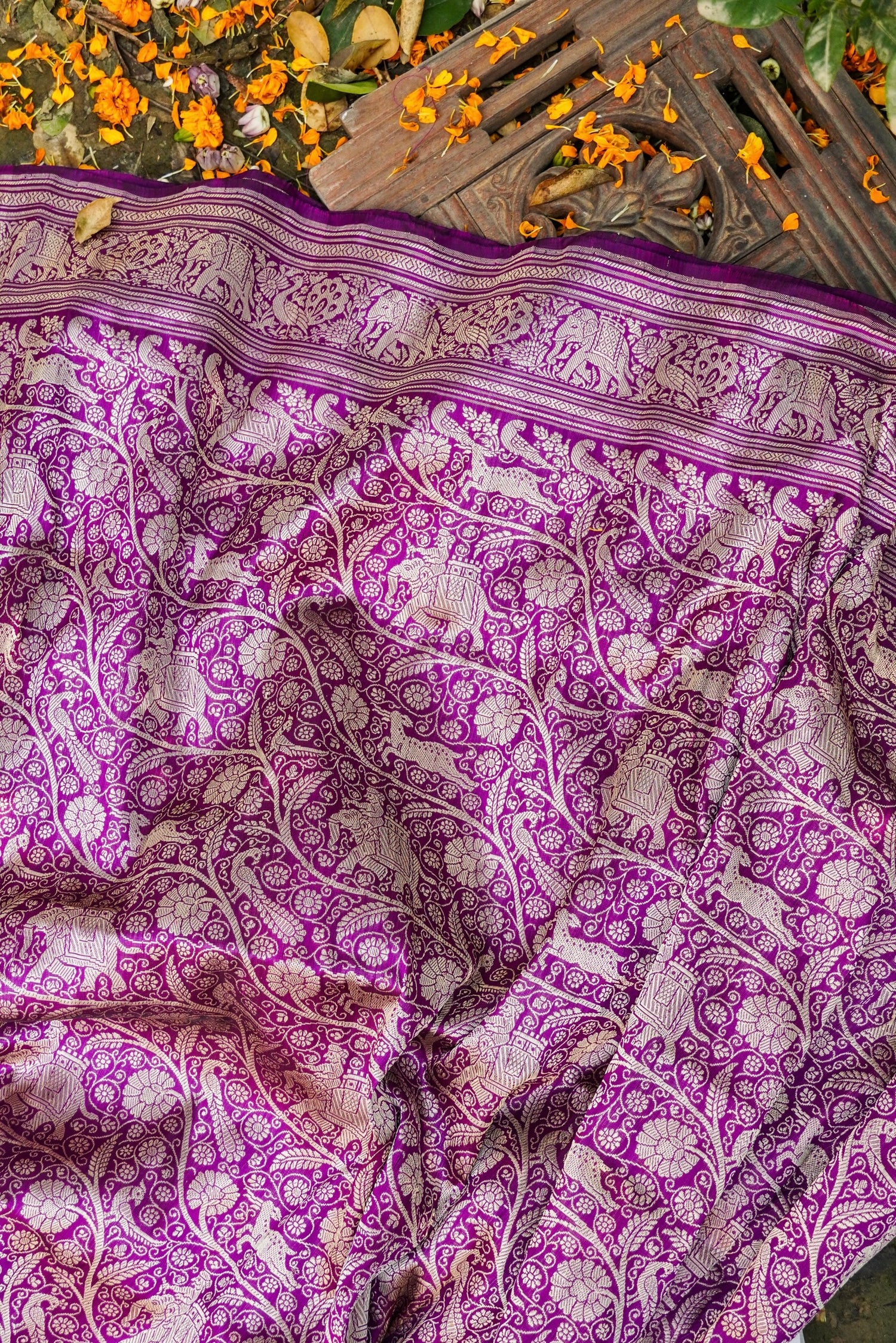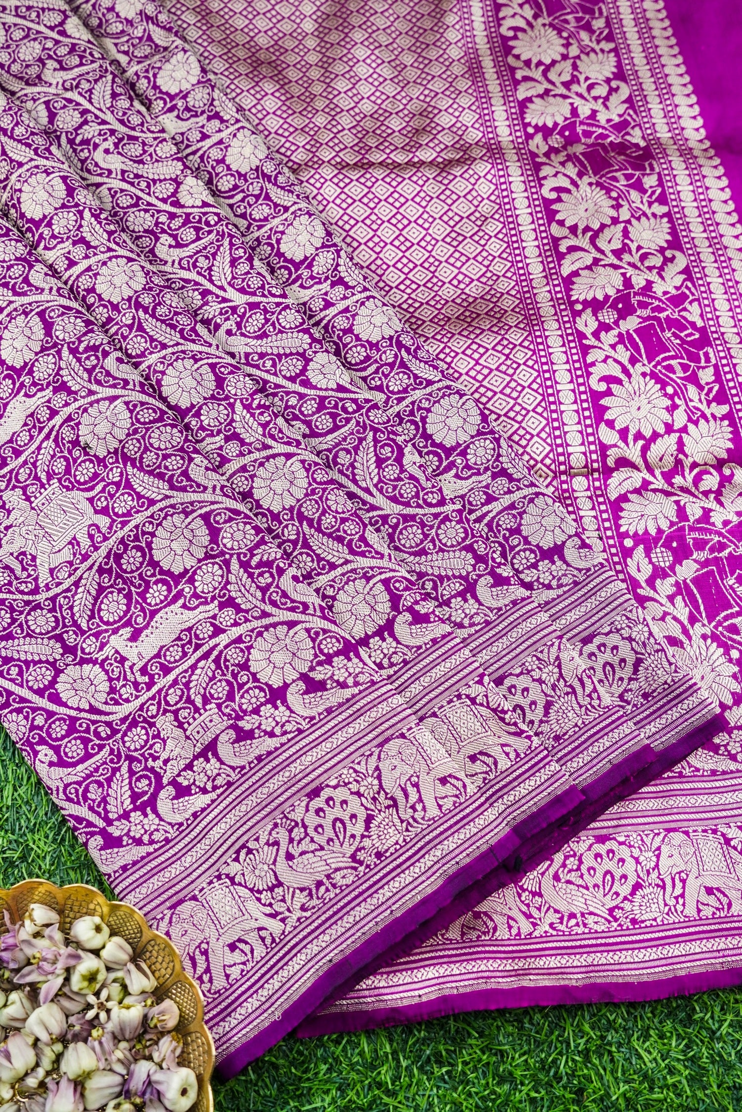Handwoven Katan Silk Banarasi Shikargah Saree