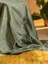 Handwoven Japanese Laurel Green Pure Katan Silk Banarasi Shikargah Fabric - Khinkhwab